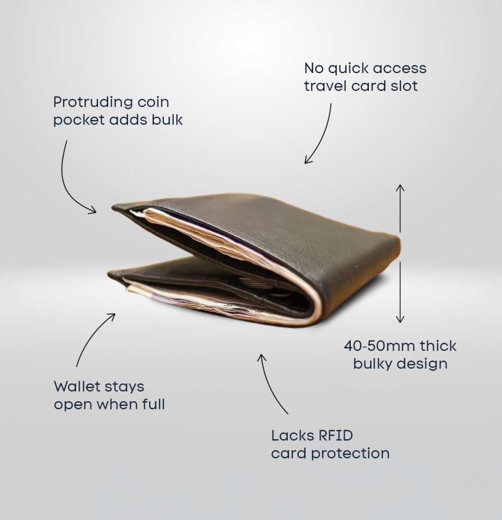 - Comfort & Convenience: Wallets needs slimmer design that sits easy in your pocket, not your backpack.